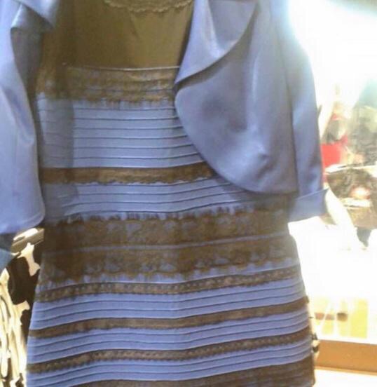 Mixed results on the color of this dress. 4 of us said black and blue and 2 of us said gold and white. Then Sonya changed her answer to gold and white later in the day. Strange.