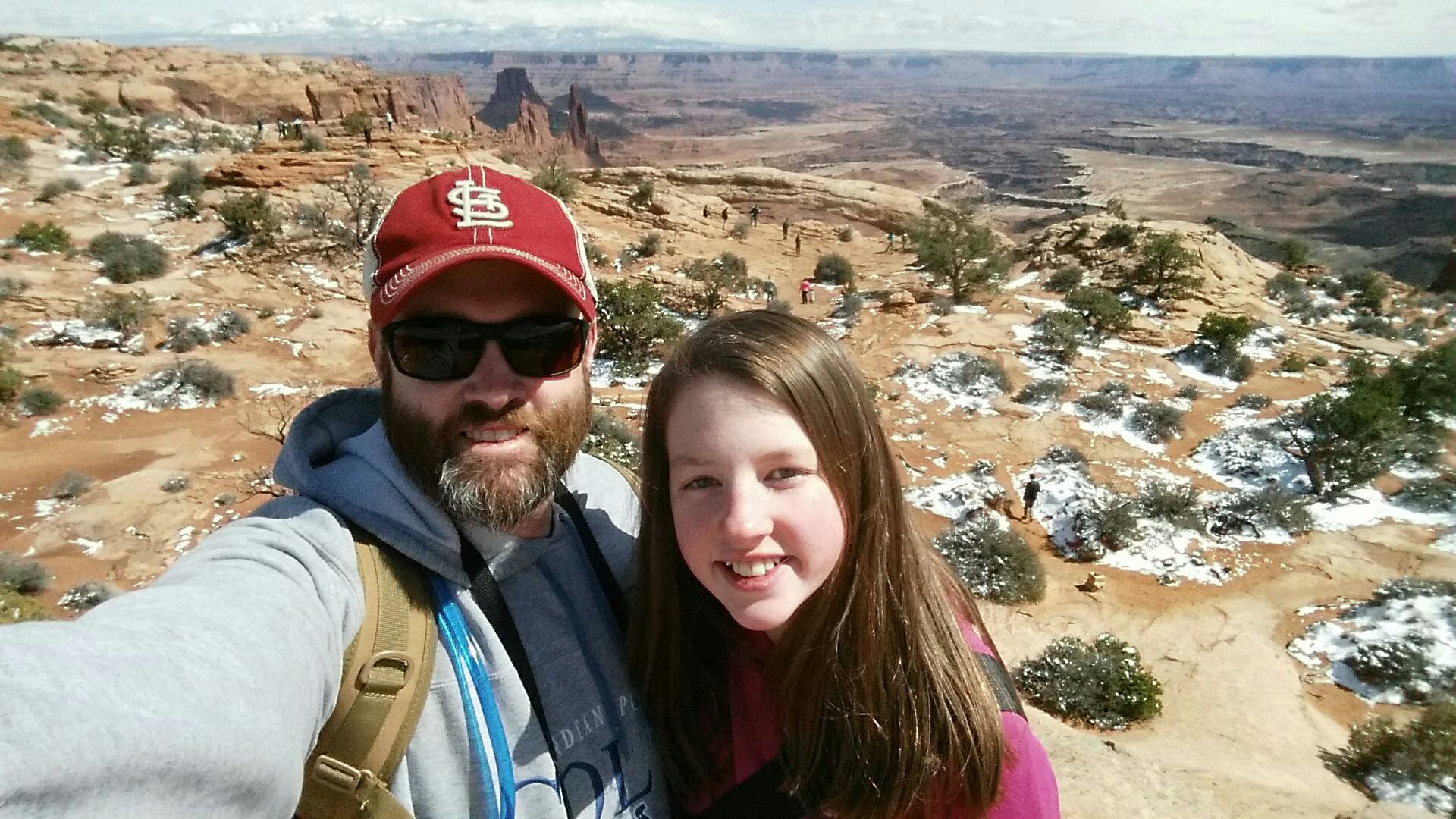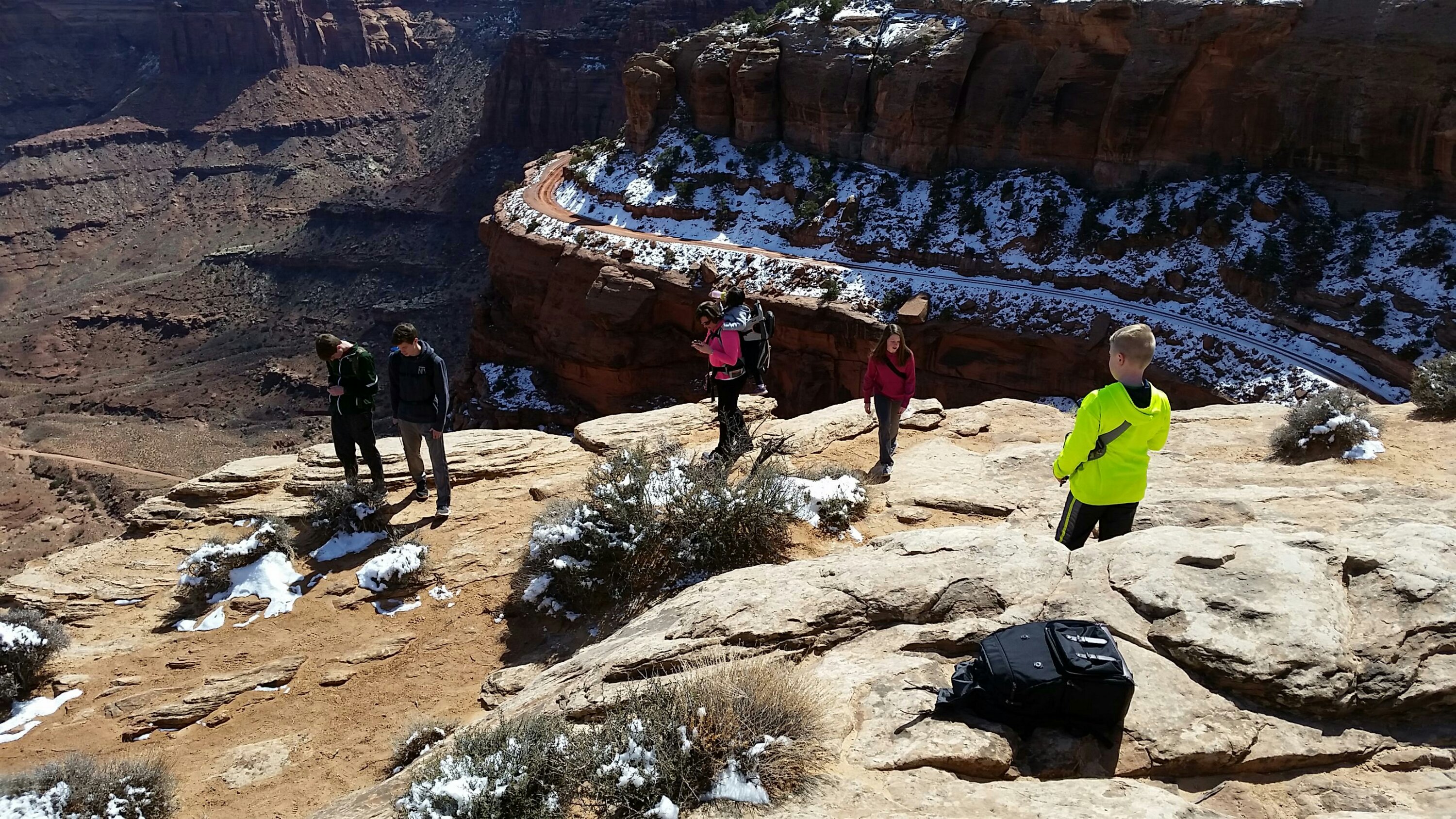 Canyonlands National Park was our stop for the day. We started at the Visitors Center, got a map and put a game plan together. The ranger recommended Grand View Point Overlook for a sunset. We got some family pictures right there at the Visitors Center and then journeyed out to Mesa Arch. The views were amazing both at the Arch and hiking up to it. Everyone enjoyed climbing on the surrounding rocks and it was clear that it was going to be a reoccurring activity.