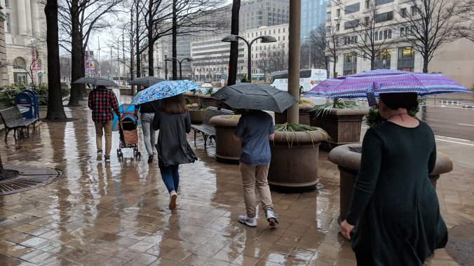We decided to surrender to our aching feet at about 4:00 and call it a day. A short 10-minute walk back to the parking garage felt like much longer in the rain. But it was very entertaining in the end.