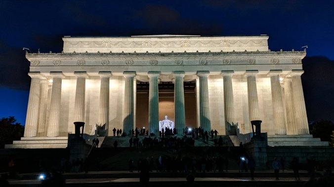 It was about a 15 minute or so walk up to the Lincoln Memorial from the Jefferson Memorial. All the things I’d heard about seeing the memorials at night were true and then some. So beautiful!