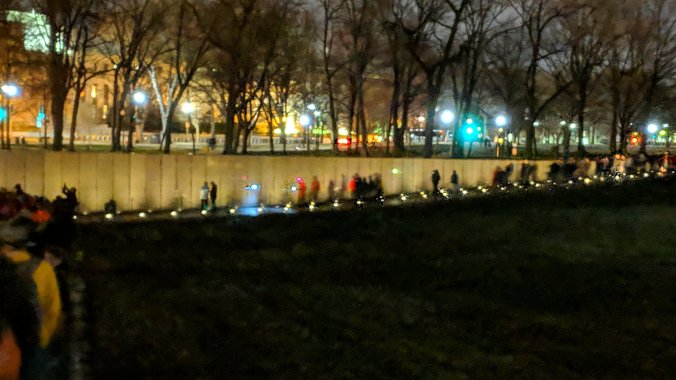 Just a quick walk to the Vietnam Veterans Memorial (The Wall). Very impressive. Very pretty, but I wish I’d seen this in the day time. Still, a very humbling tribute to the Vietnam dead.