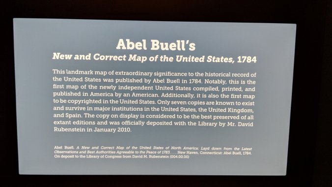 One very interesting display was the best-preserved copy (of 7 known copies) of Abel Buell’s map of America in 1784.