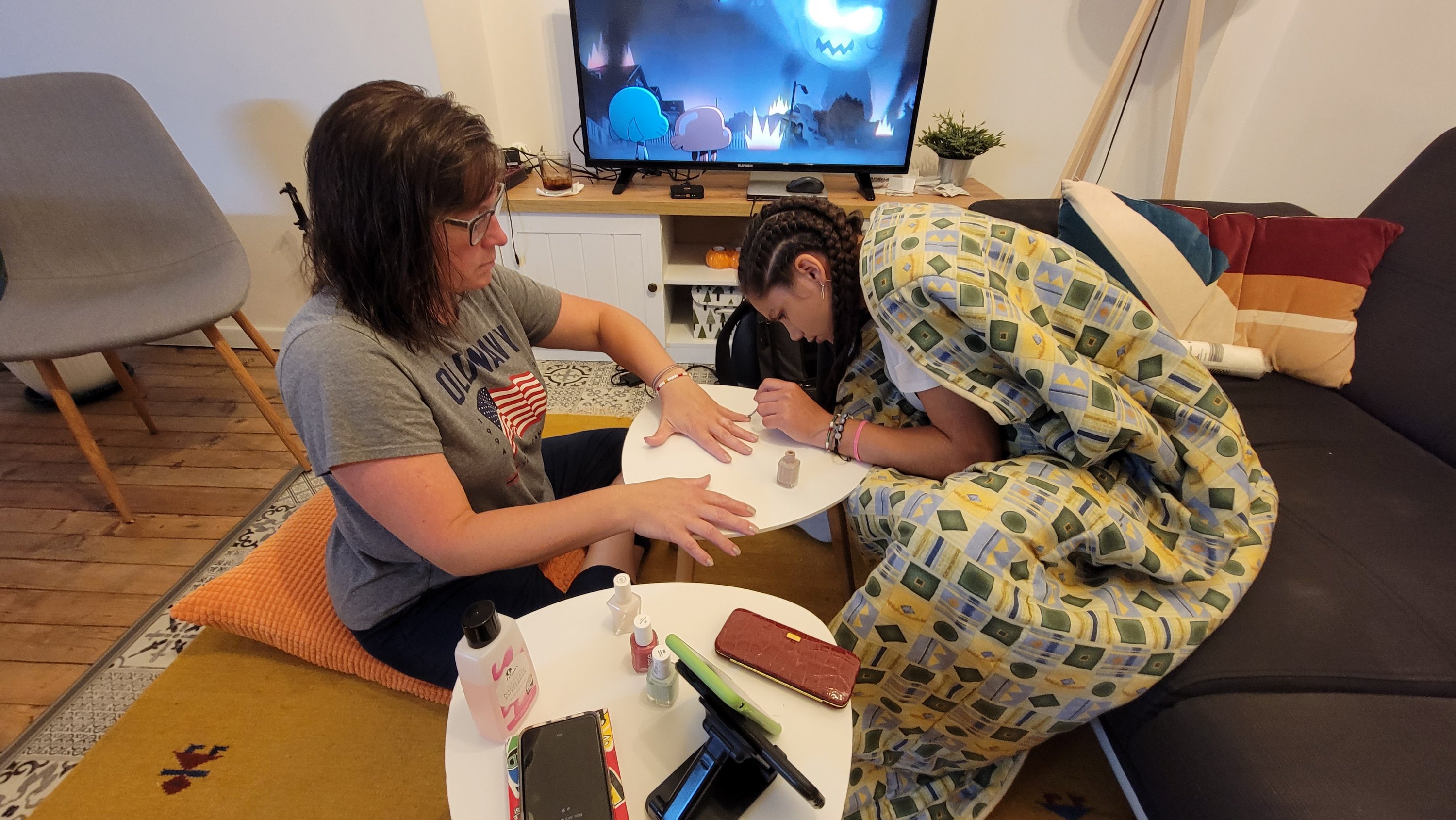 Before we left, Sonya braided Meagan’s hair again. When we got back, they had an impromptu manicure. It has been wonderful to watch them bond as mother and daughter this past could of weeks. I truly believe that Meagan has just wanted to be part of a family for so long now and she is finally being able to live out her wish. It’s very heart warming to watch her grow into the role of daughter, even at this early stage.