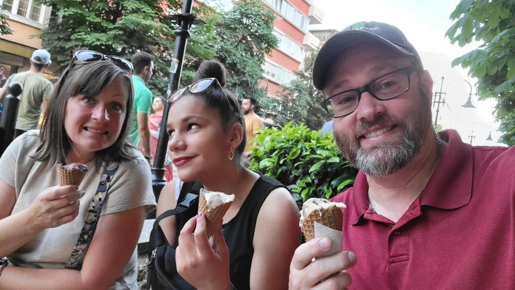 Dinner at Happy Bar & Grill and one last walk down Vitosha Blvd. before we leave tomorrow. And of course ice cream! We’ll miss these times.