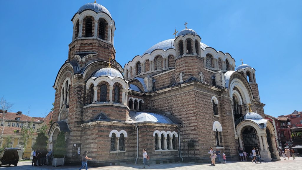 And of course, a discussion of tourism in Bulgaria must include a mention of Vitosha (pronounced “VIT-o-shuh”) Blvd. Here is where Sofia’s and Bulgaria’s tourism is centralized with all kinds of restaurants, gelato ice cream shops, shopping, souvenirs, just about anything you want to find. When we were there, there were always a lot of people there, couples, families, just about anyone having a good time. There are also many street performers at all hours of the day and night which provide for some very interesting entertainment. At the south end of Vitosha Blvd. is the National Palace of Culture, also known as “Natsionalen dvorets na kulturata” and abbreviated as “NDK”, a distinct Soviet-era style building which is another iconic building for Sofia with its surrounding fountains and green spaces.