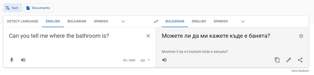 When traveling around in Bulgaria, you will find that it’s often times easy to communicate with locals, especially in Sofia, even though you may not speak too much Bulgarian. Many Bulgarians are taught English while in school (Since the mid-90’s) and can at least speak a little English – enough to order your meal or make purchases in stores. They may be self-conscious about speaking it or they may understand what you’re saying even though they don’t speak it (so, watch what you say). I found that if they greet you in Bulgarian, just ask “an-GLEE-skee?” to ask them if they speak English. If not, we found that Google Translate does a very good job at translating. A local friend of ours told us that Google Translate has come a long way since it first came out. “Conversation mode” is what we often used, allowing for English-Bulgarian and Bulgarian-English translation, almost in real-time.