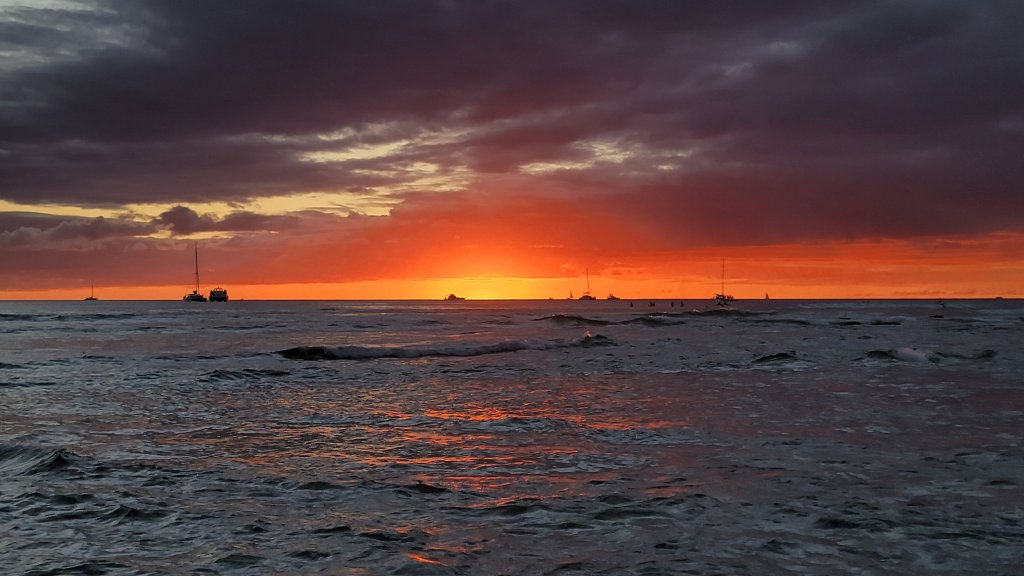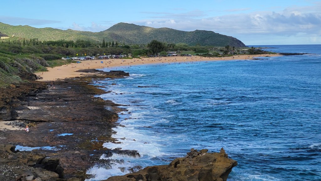 From there it was “wing it mode” until the sun set. We hadn’t seen a sunset in Hawaii yet and we thought that nearby world-famous Waikiki Beach would be a good place to see it. We drove to what’s called the “toilet bowl” near Hanauma Bay. We thought that we could access it from the road, but it looks like it’s only accessible from entering the bay park, which is closed today. Sonya found something that said that it may only be accessible by boat at this point. Bummer.