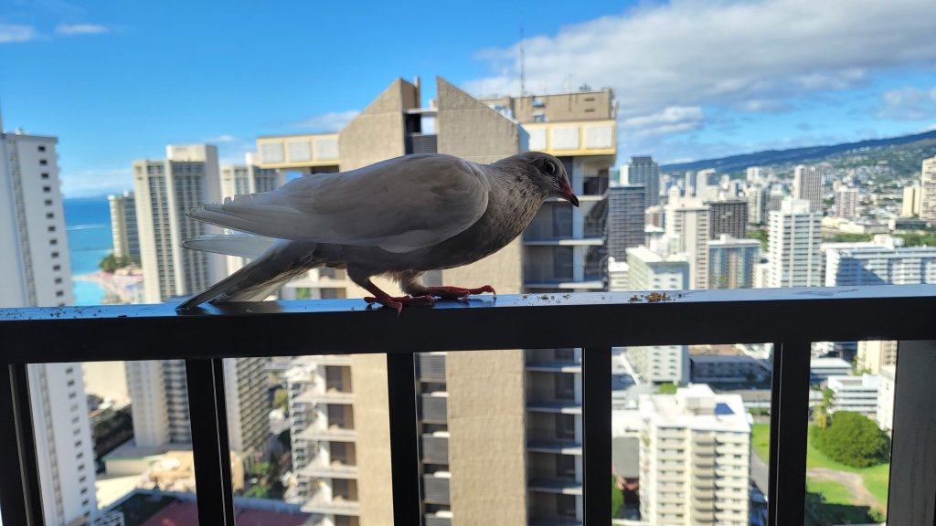 Afterward, it was a non-memorable lunch at Burger King and back to the AirBnB. While prepping for our next stop, we had some fun with some birds on the balcony.
