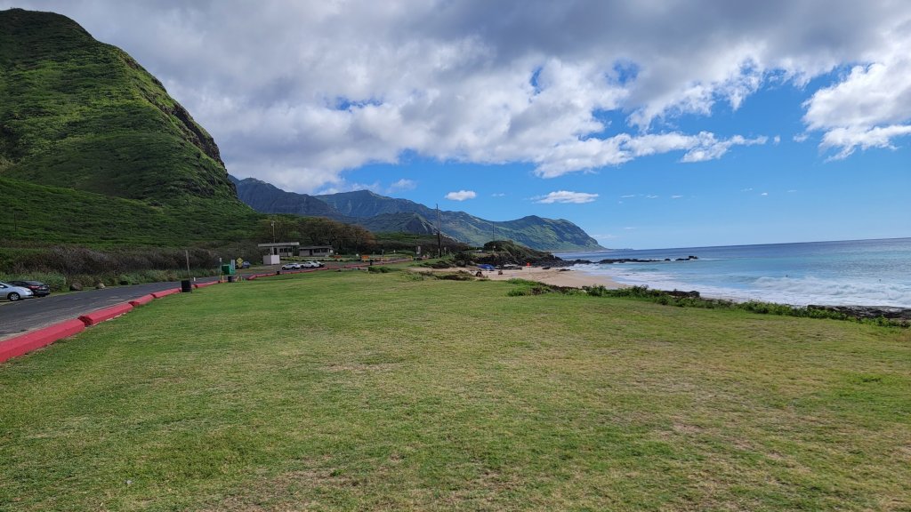 The afternoon was an entertaining one. After the Diamondhead hike, those of us who went on the hike were kinda sweaty. Although we’d cooled down in the vehicle, we still had some funk we’d like to get off before flying back tonight. So we spotted what we thought was a shower house at one of the Waianae area beaches. So we headed there in hopes of showering and keep moving. It turned out not being a shower house.