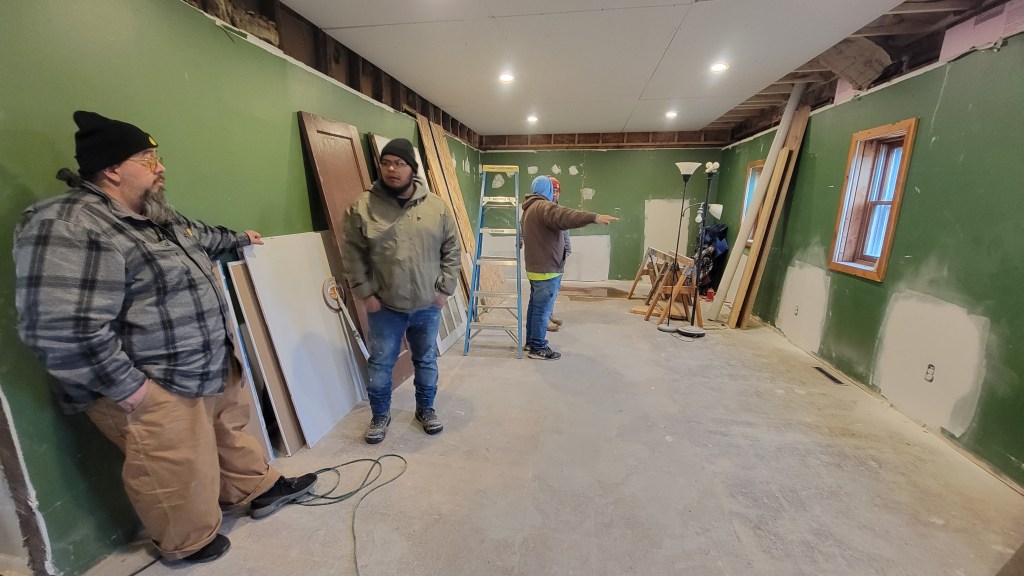 That same afternoon, we had a pow-wow with our general contractor, his planner, and the crew that would be overseeing the modifications to the back wall of the family room. You may remember that we recently discovered that most of the wall turned out to be cinder block. We didn’t really know what the extent of the work which would have to be done until this day.