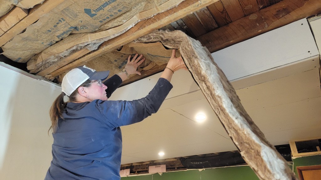 First, Sonya and Meagan worked on putting up the insulation while I worked on the headers drywall Friday night.