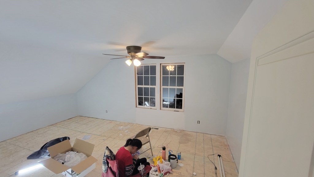 This past couple of weeks, Sonya was in her element with painting. We’re eager to get things done and move-in-ready. She just wanted to finish up the 2nd floor and say that it was done. They first started with tackling the girls’ room, painted a light blue. The bathroom was painted a mint-colored green, which they decided they didn’t like and will be choosing another color for. They also painted Seth’s room, with a darker blue accent wall and lighter beige for the other three walls. The “hangout room” outside of the girls’ room and the hallway was painted a darker beige. Then came Vivian’s room, painted a light pink, personally picked out by Vivian herself. Sunday, we picked out paint for our room, which she’ll likely start painting this week. I haven’t gotten a lot of pictures of the finished rooms yet. Sorry about that.