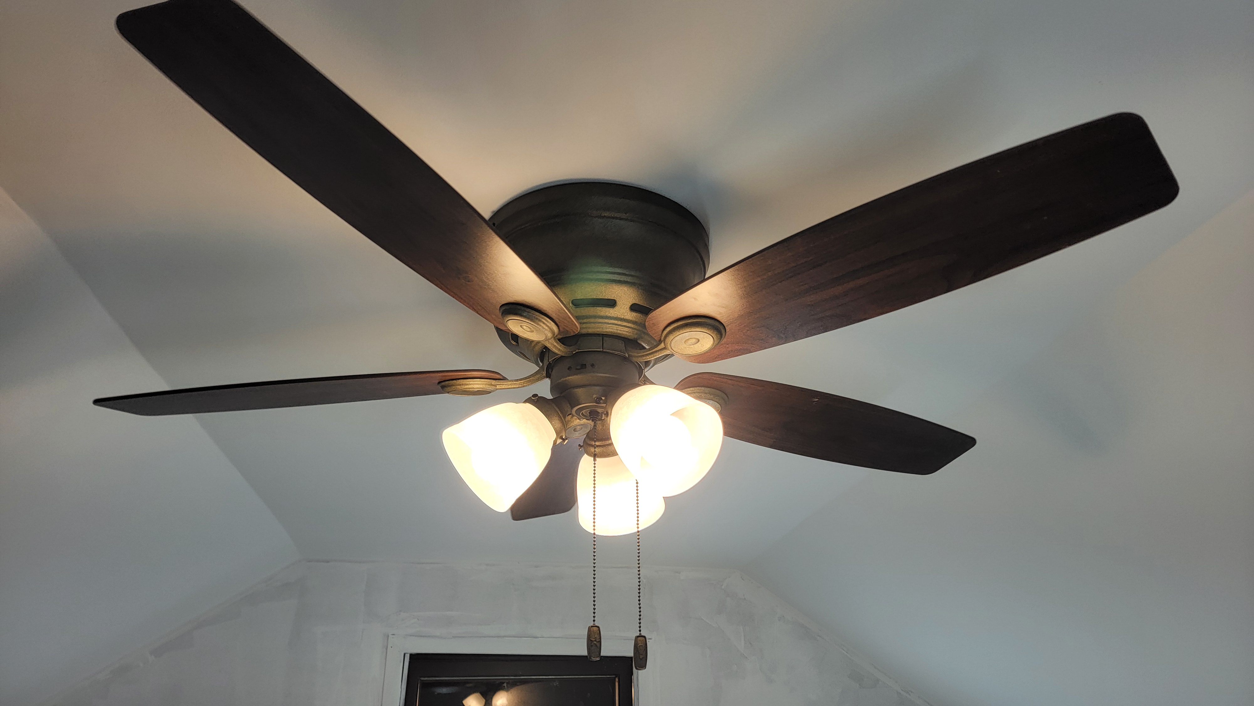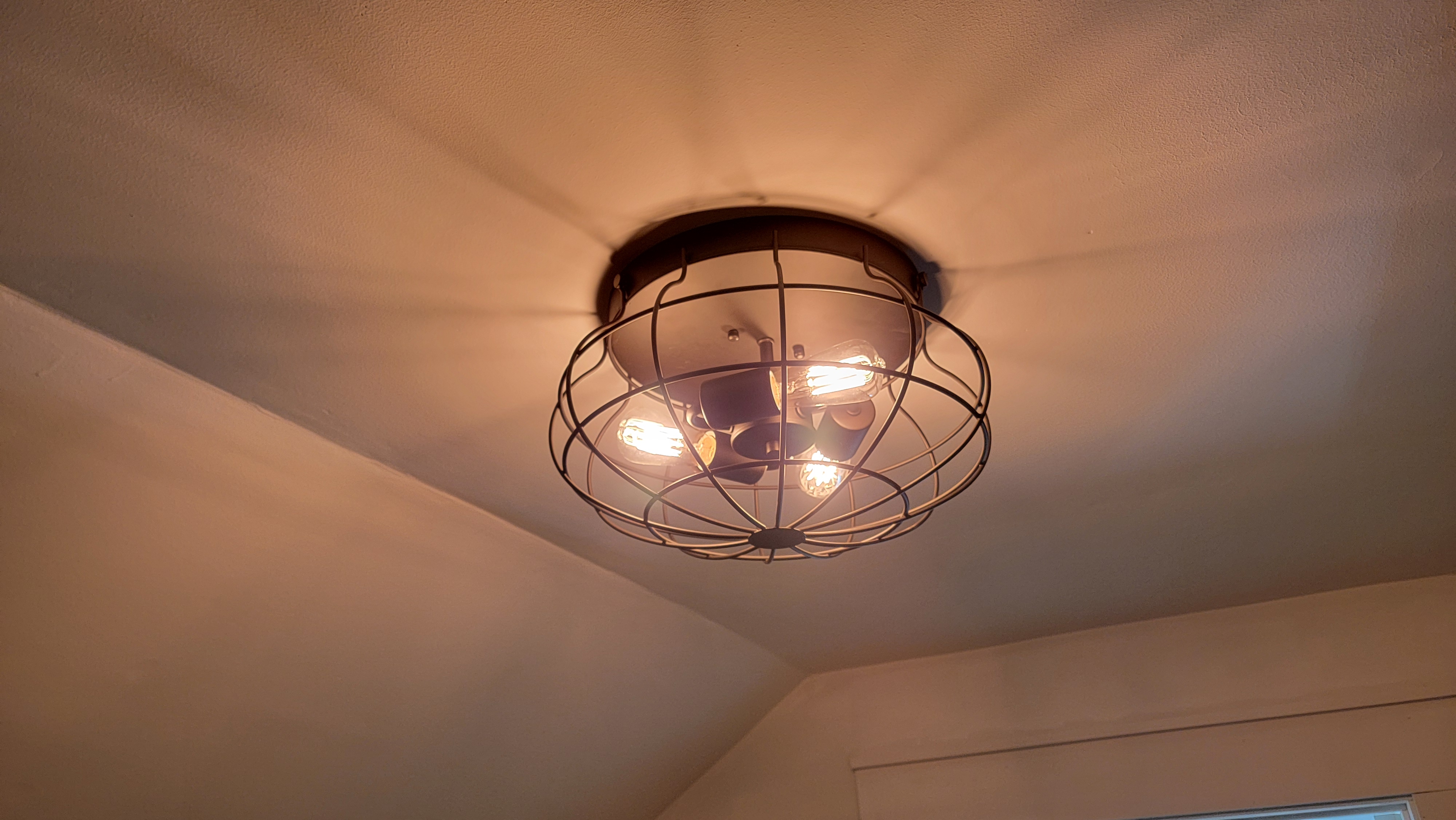 Post-painting (at least of the ceilings), came installing the lights and ceiling fans. Not much to say here, other than they’re very easy to install. Meagan and I installed the ceiling fans in the girls’ room and Seth’s room, I installed the Hangout Room and hallway lights, and Seth, Joelle & I installed the ceiling fans in our room and Vivian’s room. And they look really good!