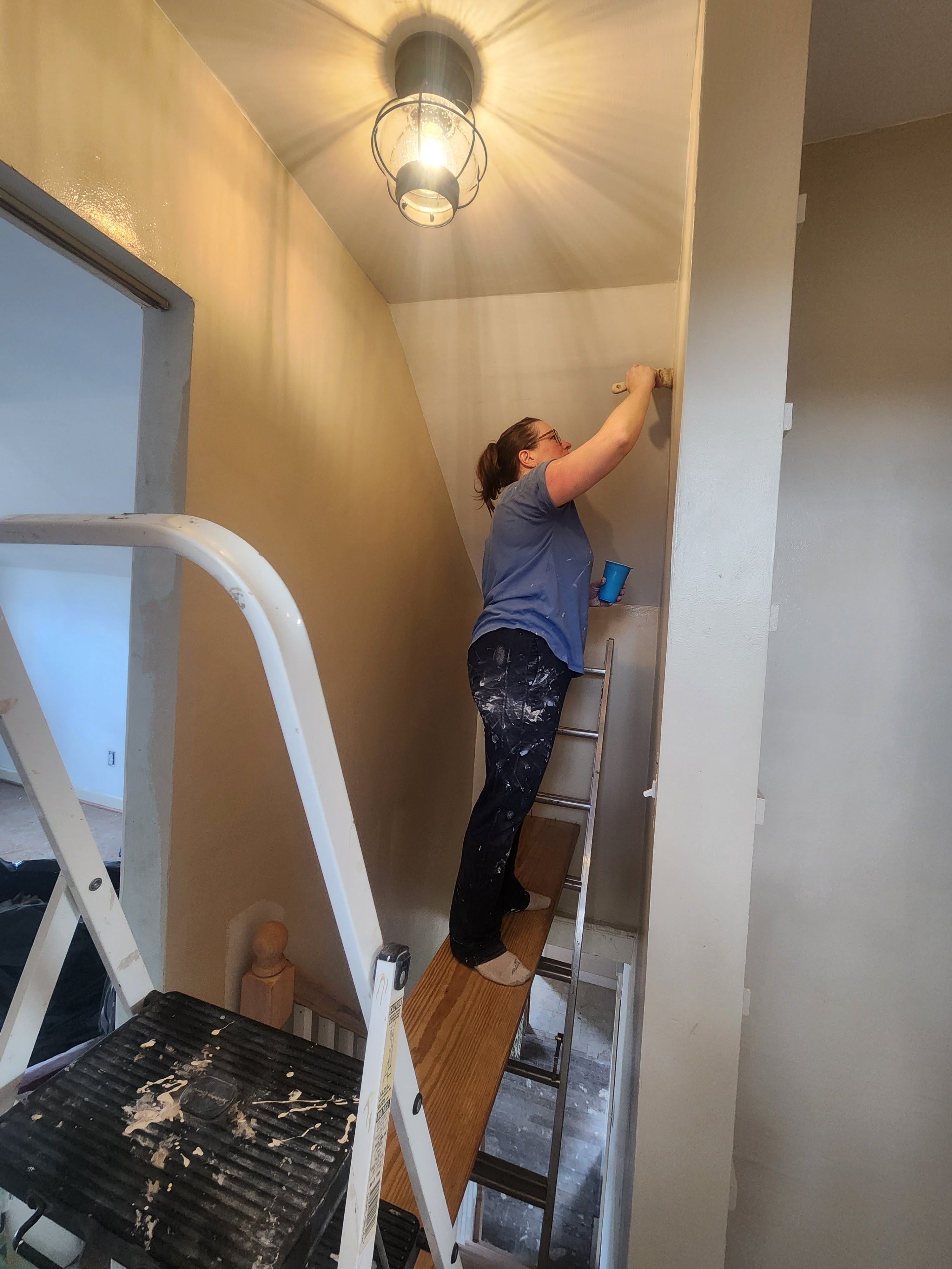 This past couple of weeks, Sonya was in her element with painting. We’re eager to get things done and move-in-ready. She just wanted to finish up the 2nd floor and say that it was done. They first started with tackling the girls’ room, painted a light blue. The bathroom was painted a mint-colored green, which they decided they didn’t like and will be choosing another color for. They also painted Seth’s room, with a darker blue accent wall and lighter beige for the other three walls. The “hangout room” outside of the girls’ room and the hallway was painted a darker beige. Then came Vivian’s room, painted a light pink, personally picked out by Vivian herself. Sunday, we picked out paint for our room, which she’ll likely start painting this week. I haven’t gotten a lot of pictures of the finished rooms yet. Sorry about that.