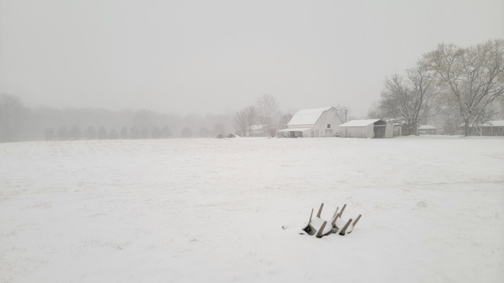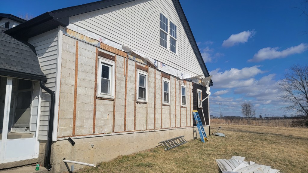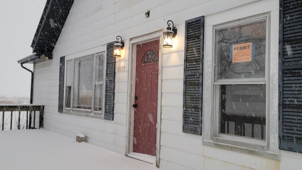 Apart from renovation progress, we also had some interesting weather this past week. The Monday evening sunset was incredible! We saw lots of pictures posted of it. Also, on Friday night, we got about 4 inches of snow, which was the initiation of the transition between the Midwest’s sub-seasons of Fool’s Spring (with temperatures in the 60’s) and 2nd Winter.