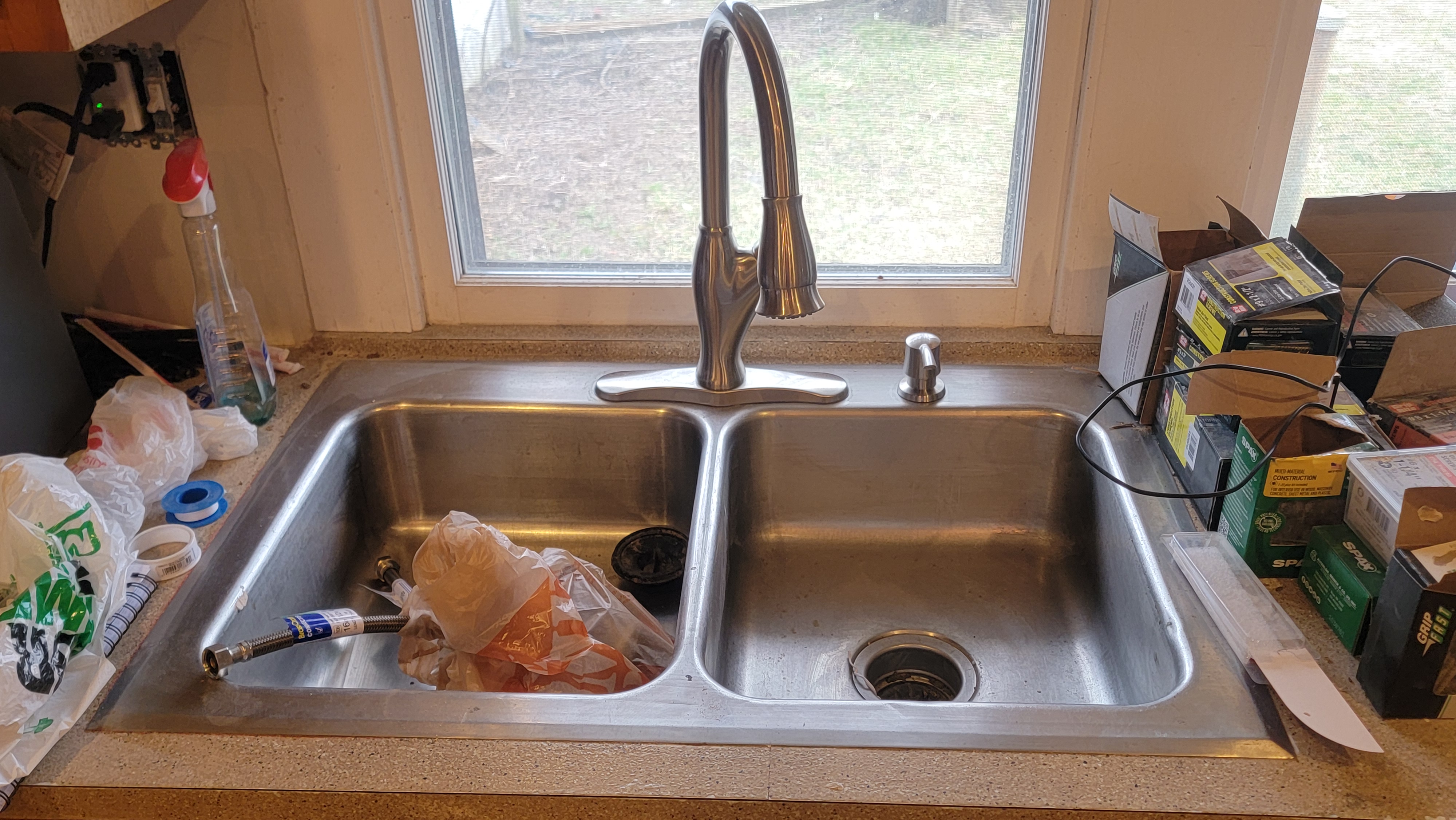 Other than that, it was just a bunch of little jobs that add up. Sonya was hard at work with the trim around the windows and doors. I trimmed out the girls’ window. The kitchen sink got installed, along with a new septic-grade garbage disposal. It’s starting to come together with a lot of little details finishing up. Very exciting!