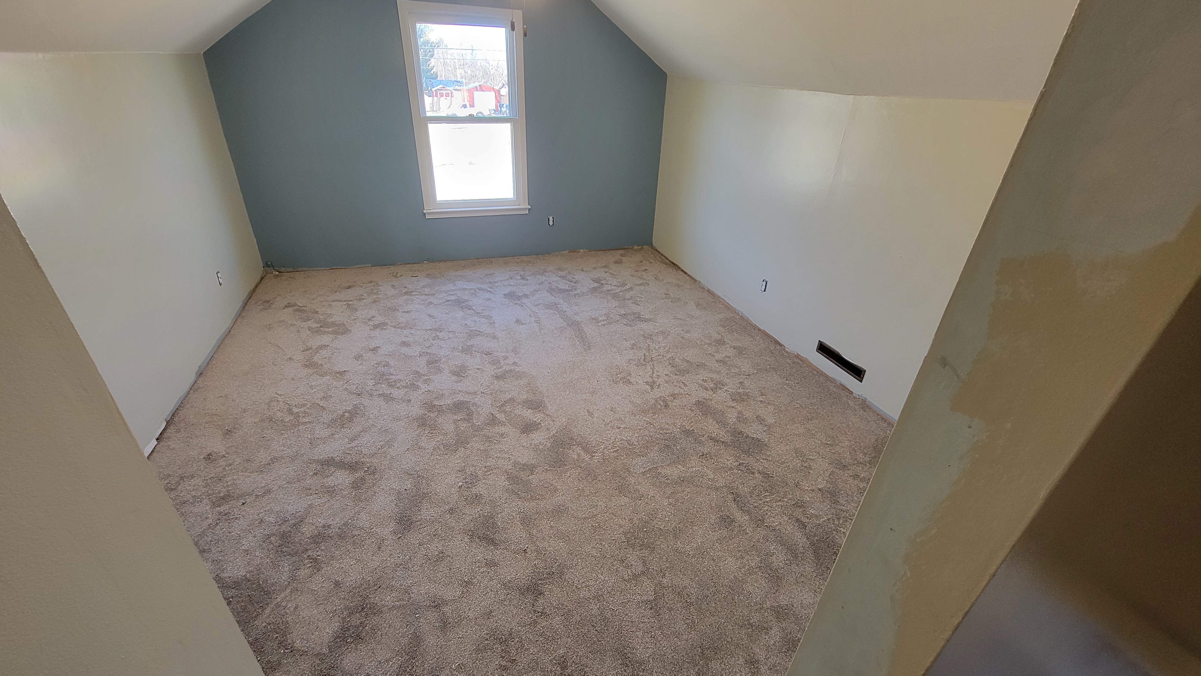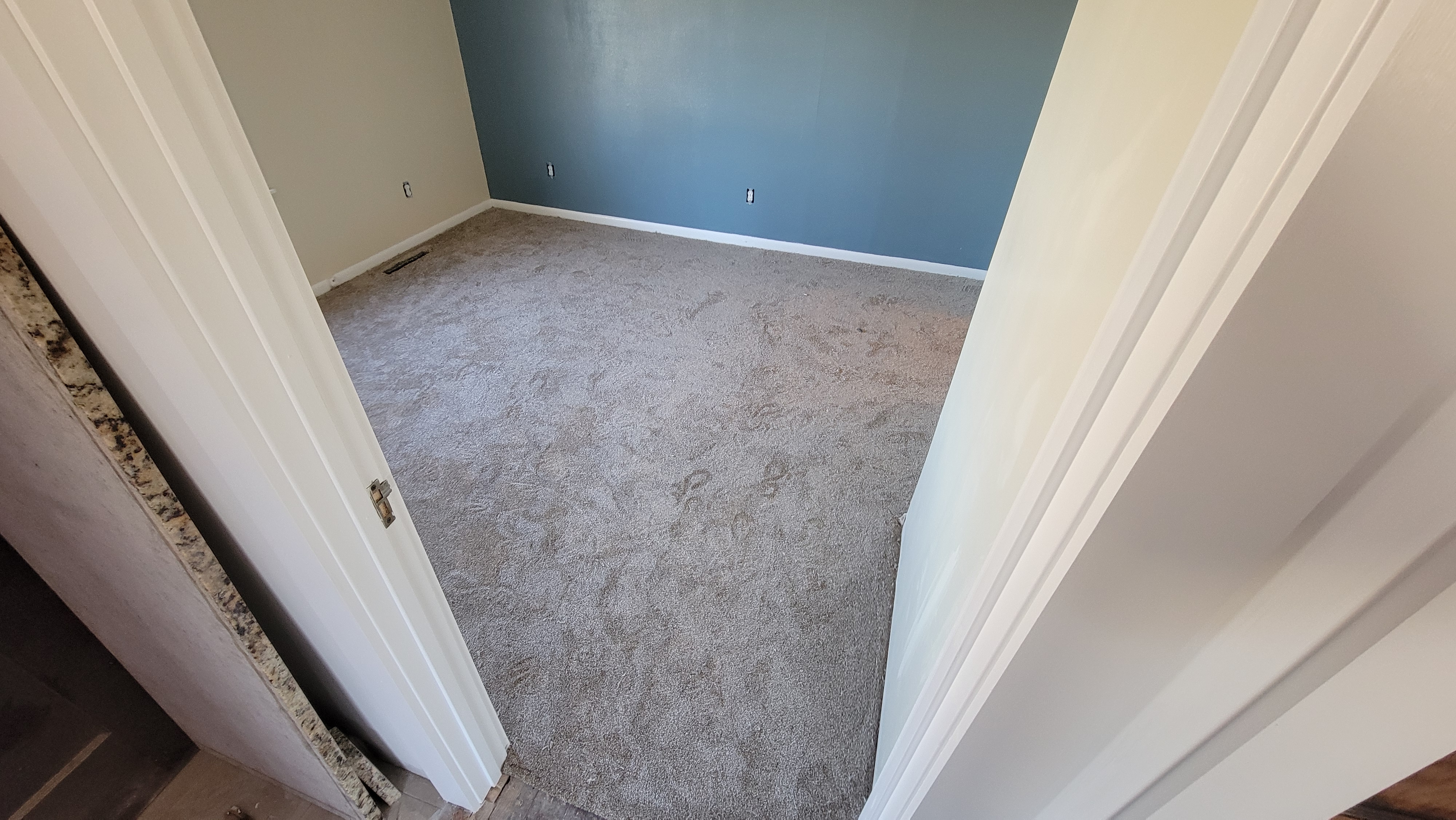 Another big step in this house-to-home transition was the installation of the carpet. You may remember that our original plan was to install hardwood flooring throughout the first floor and vinyl plank flooring throughout the second floor, which exceeded our budget. We ultimately decided to carpet the second floor and the bedrooms, and install engineered hardwood floors through the rest of the first floor. I’m very happy with this decision. I think that having carpet in the bedrooms is going to be a good move.
