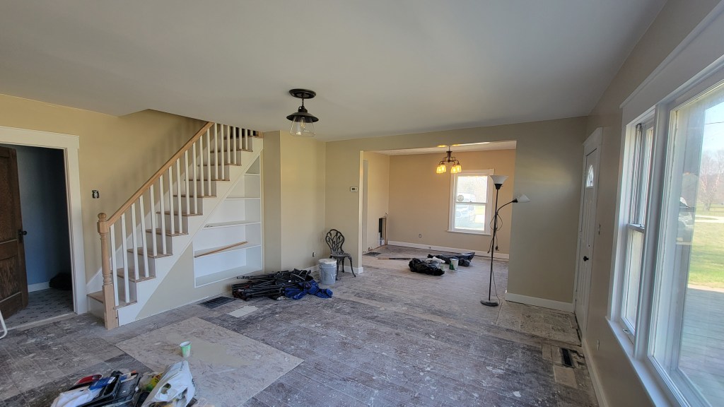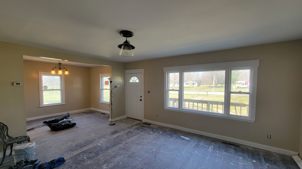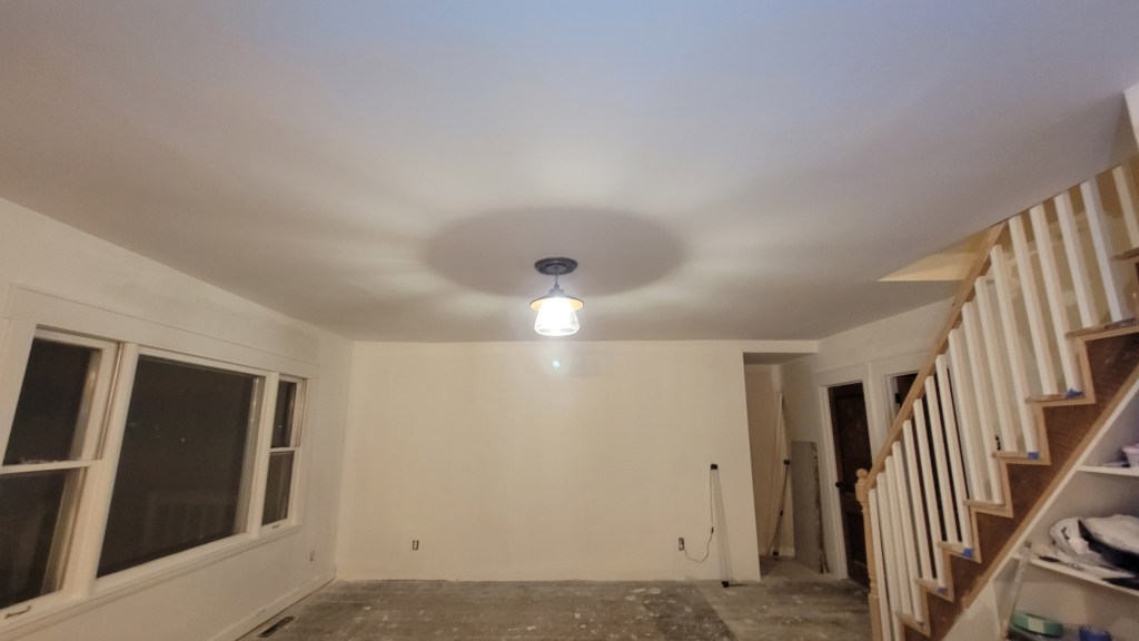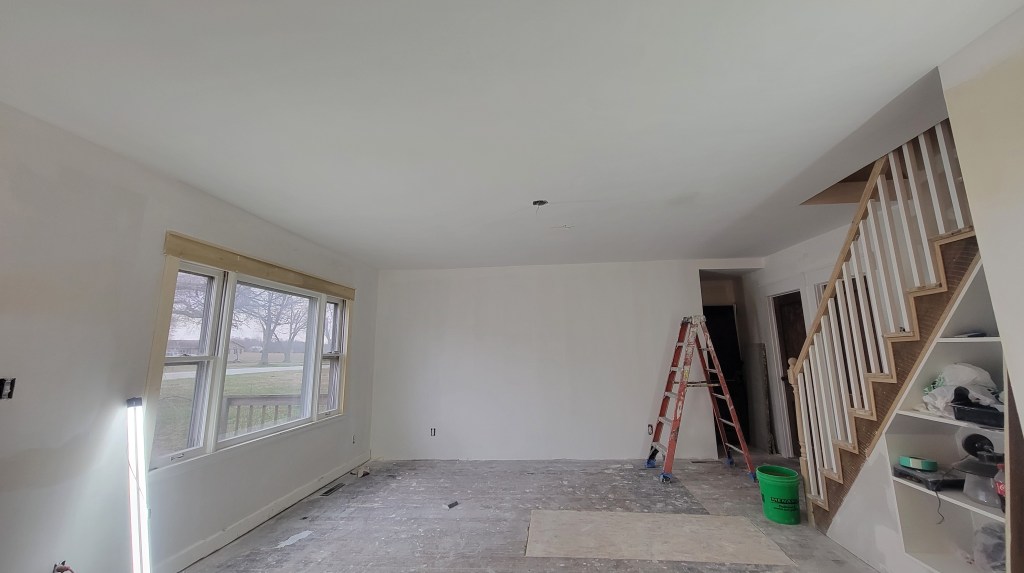 I think it’s safe to say that we are 100% done with the drywall hanging and finishing at this point. The living room is done and painted. We still have baseboards to complete. Some of the original baseboards that we were intending to keep and reinstall got thrown out, so we are on the hunt to replace small sections. Hopefully we can find something at least similar.