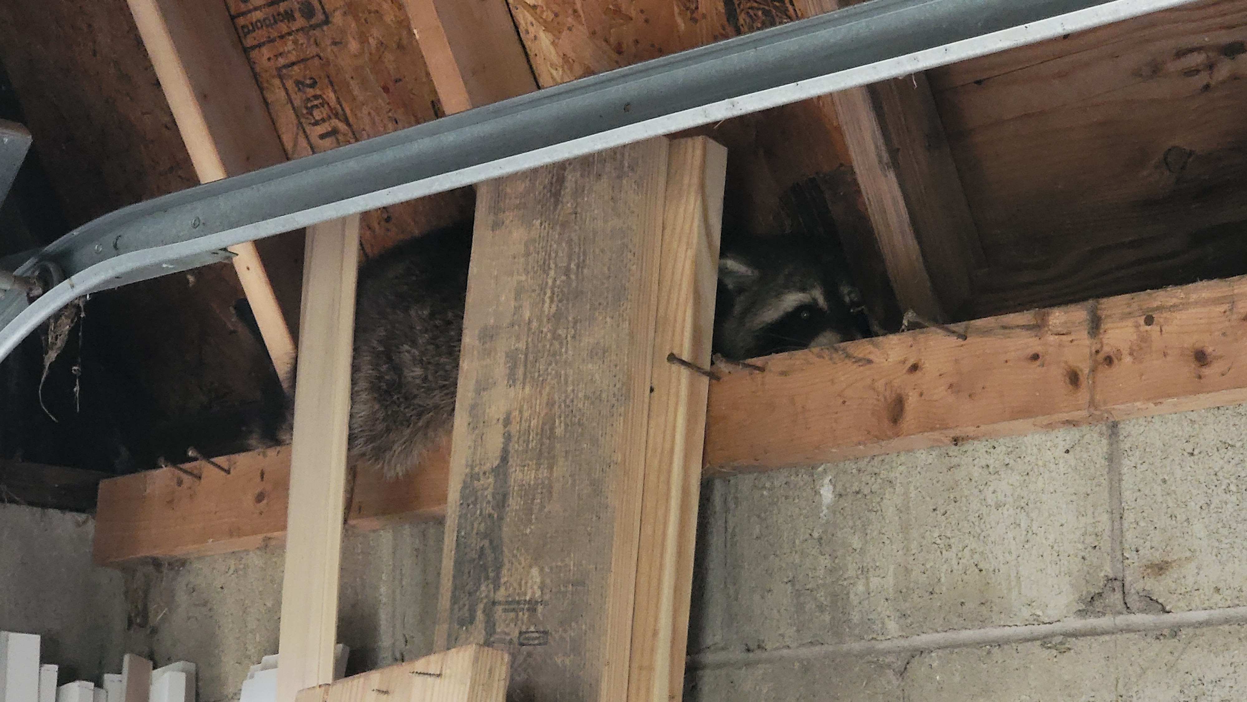 We had a little visitor in the attached garage last week. I pulled up to the house that day and heard some scratching coming from the garage. After some investigating, I found him huddled up inside at one of the corners next to the garage door. I left the door open for him to get out and he was gone later on that day.