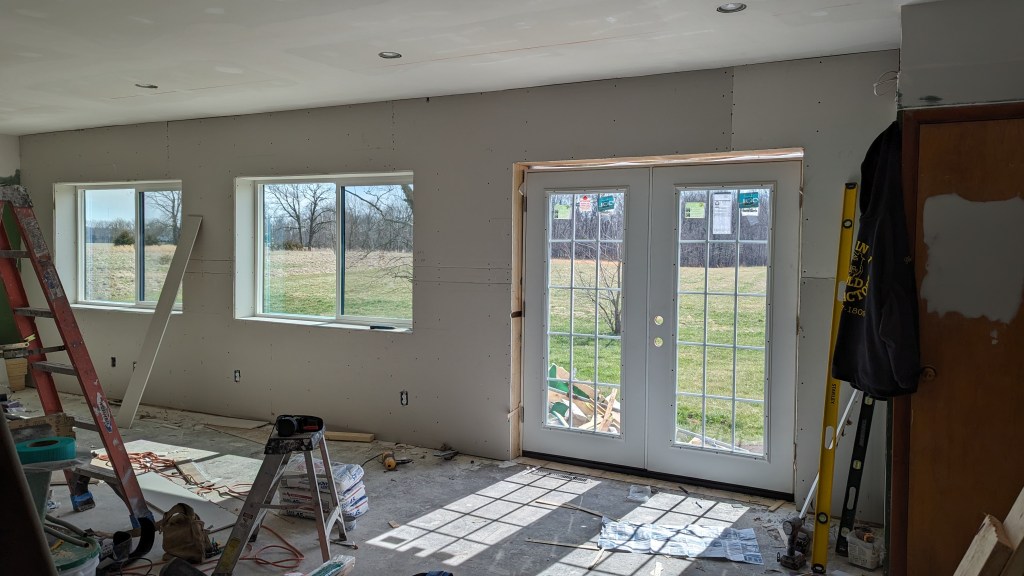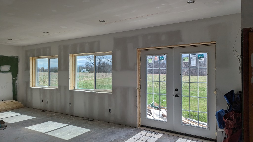 We did get a call from our GC telling us that the French doors that we picked out weren’t going to work. 😦 It was going to end up being more expensive to custom make a door jamb and threshold to fit the doors than it was just to buy new doors. So that’s what they did. No big deal, other than we’d really wanted to have those cool antique French doors installed.