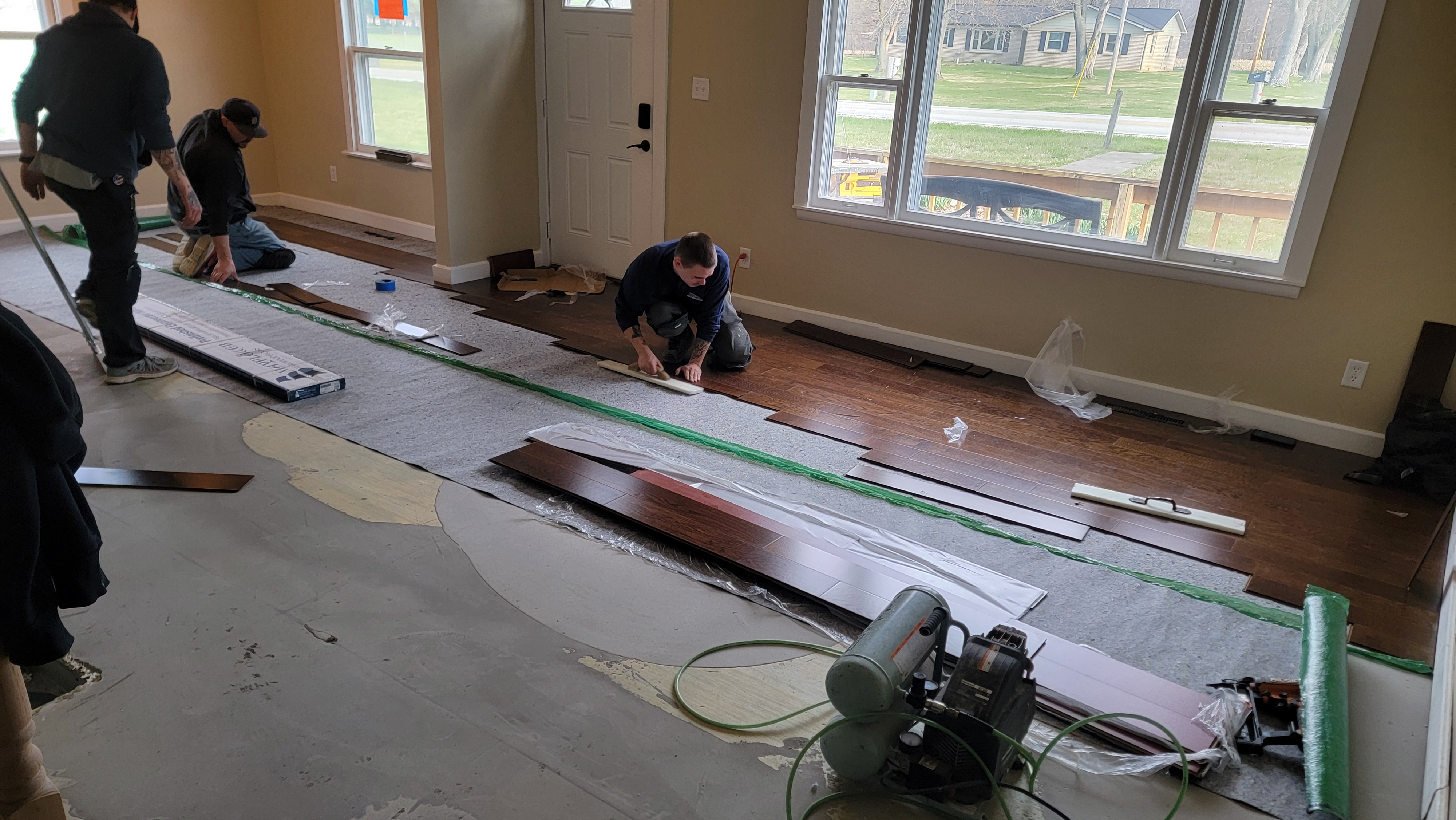Exciting week this past week! The biggest event that happened was the installation of the engineered hardwood flooring. Installers came in Wednesday, mostly for preparation for the installation. Then Thursday, they installed the flooring. They did a fantastic job and it looks amazing! It’s really starting to look like a home. I’ll let the pictures do the talking.