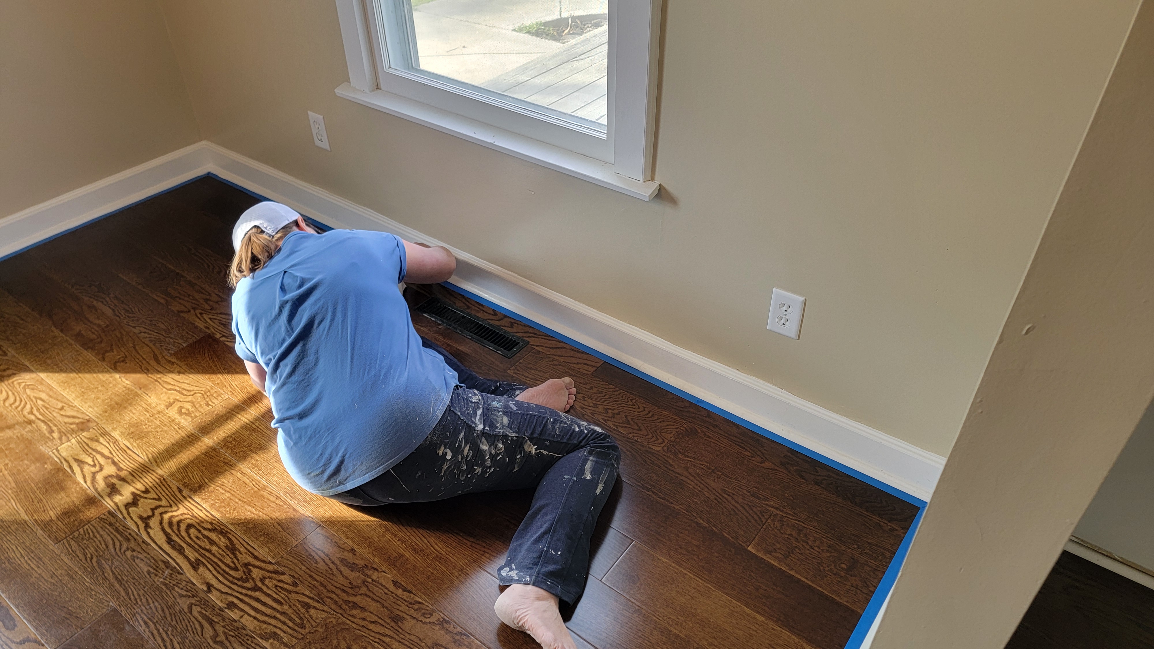 With the flooring complete, Sonya had some painting to finish up before moving more of our stuff into the house. She did the finishing touches on the living and dining rooms: trim and baseboards. Next is the kitchen. Two walls will be painted and two will be wallpapered. She’ll start in on the cabinets next. We’ve decided to delay a kitchen remodel, pushing it down the road for now. The kitchen is functional and will do for a year or two (more or less).