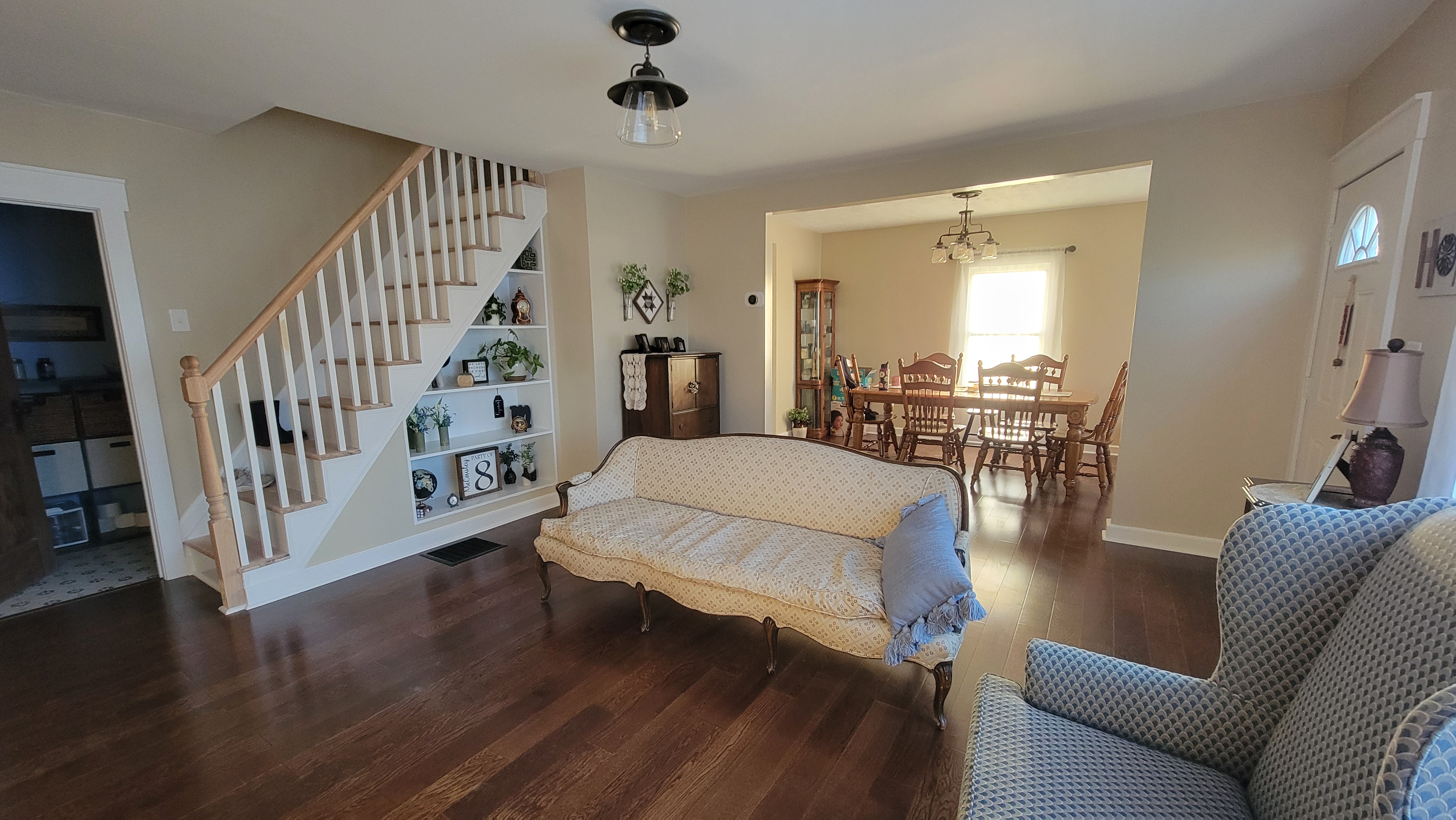 The living room came together really nicely. We have had a couch, dated back to the mid 1910’s, that we purchased years ago that we’ve really been wanting to use. Savannah, during a random stop at a local Goodwill, found a couple of wingback chairs that we purchased for a song that have been a nice addition. We moved the piano into this room as well, along with a large area rug, and it’s really taken shape!