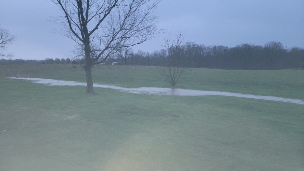 As is typical for Indiana in the spring, we get a lot of rain. There have been a few days when it’s really come down and it’s been interesting to see what the house and the yard does during this time. This is another project that will have to work on in the future. The back yard has a low spot that collects water, directs it to the culvert under the driveway, and into the pond. On the part of the pond the connects to the neighbor’s property, the dam is eroding away or damaged to some degree. The overflow for the pond is directed underneath their driveway to a small creek on the neighbor’s property. So, we’ll have to repair that at some point.