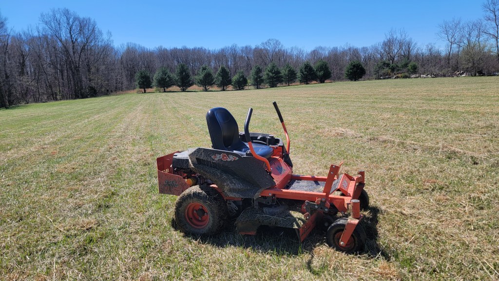 March kicked off mowing season. I’d purchased a zero-turn mower off of Facebook Marketplace in the fall. I knew that we’d need one and, since we had the money at the time, I went ahead and got one in anticipation of the spring. Turns out the head gasket blew shortly after purchasing it (known by the previous owner? Who knows?). Fortunately, it was a relatively easy fix, along with a tune up, and we were back in business (along with acquiring a new skill). But mowing this property has taken some adjustment, mostly on Sonya’s part. What was previously about an hour or so job is now an all-day event.
